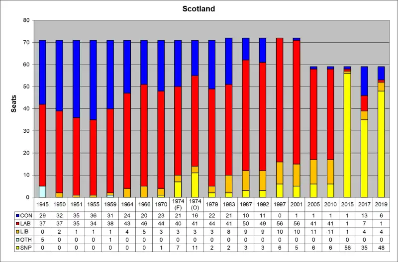- List of Great Britain and UK Parliament constituencies in Scotland from 1707 for graphical representation by party