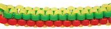The most common kind of thread used for the craft is flat and comes in many colors, sometimes called "lanyard" or "gimp thread," often depending on region. Another kind of scoubidou thread is supple, round, and hollow plasticized PVC tubes usually about 80 centimetres in length. They are sold in various colors, sizes, and types, and are used to make items by binding them together with knots. On account of their elasticity and hollow cross-section — which enables them to collapse and deform when pulled — they form tight and stable knots. Key chains, friendship bands and other trinkets are most commonly woven, although more complicated shapes and figures can also be created.[2]