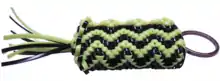 The cobra stitch (or snake) involves tying two strands around two other strands back and forth.[7][8] A super cobra (or king cobra) is created when the strands are tied around the cobra itself, making it wider and larger.[9]