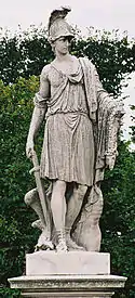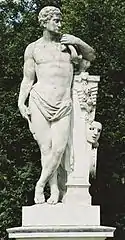 | 32 | Gaius Mucius Scaevola | Johann Martin Fischer | Gaius Mucius Scaevola was a legendary Roman youth known for his bravery. During the siege of Rome by King Lars Porsena of Clusium at the end of the sixth century BC, Scaevola entered the enemy's camp and attempted to kill the king. When he was taken prisoner and threatened with death, Scaevola placed his right hand into a fire to show his indifference to death. Porsena was so impressed he freed the brave youth, who took on the cognomen Scaevola meaning "left-handed".[39] | ![]() |