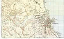 The Sea Cut is fed by small streams and becks mainly draining water away from the hills on the western side of Scalby and Newby. In response to major flooding on the River Derwent in 1799, a canalised beck was cut between Everley and Newby Bridge (the present day A171 road bridge that spans the beck between Newby and Scalby).[4] The Sea Cut was primarily to stop flooding in West and East Ayton further downstream.[2] This means that water flowing in the River Derwent takes 150 miles (240 km) before reaching the sea via the Humber Estuary as opposed to the relatively short distance via the Sea Cut.[5] This scheme, along with others in the area (straightening of the Derwent and Hertford rivers and land drainage) was promoted by Sir George Cayley and William Chapman with Robert Wilson employed as engineer for the Sea Cut navigation.[6]