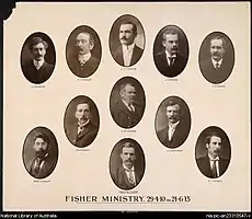 The Second Fisher ministry (Australian Labor Party) was the 8th ministry of the Government of Australia. It was led by the country's 5th Prime Minister, Andrew Fisher. The Second Fisher ministry succeeded the Third Deakin ministry, which dissolved on 29 April 1910 following the federal election that took place on 13 April which saw Labor defeat the Alfred Deakin's Liberal Party. It is the first federal government in Australian history to be elected with a majority in the House of Representatives, as well as the first majority national Labor government in the world. The ministry was replaced by the Cook ministry on 24 June 1913 following the federal election that took place in May which saw the Liberals defeat Labor.[1]