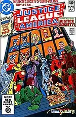 The next incarnation of the Secret Society appeared in 1981, headquartered in a new Sinister Citadel in Nepal, and was created by the Ultra-Humanite, who organized foes of both Earth-One's Justice League and Earth-Two's Justice Society. This version of the Society consisted of the Ultra-Humanite, Brainwave I, Killer Frost I, the Cheetah II, the Signalman, the Floronic Man, the Monocle, the Rag Doll I, the Mist I, and the Psycho-Pirate II, and marked the first appearance of the now-classic albino ape body of the Ultra-Humanite.[10] After capturing and sending 10 heroes of the JSA and JLA to Limbo, the Society was betrayed by the Ultra-Humanite, who had his own agenda.[11] In response, the betrayed villains of Earth-1 freed the 10 heroes and attacked the Ultra-Humanite. The entire Secret Society of Super-Villains was incarcerated in Limbo by the JLA and JSA.[12]