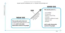A diagram of the relationship between security sector reform and governance relative to time and quality