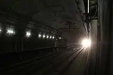 The Seikan Tunnel is the world's longest undersea tunnel by overall length (the Channel Tunnel, while shorter, has a longer undersea segment).[3] It is also the second-deepest transport tunnel below the sea level after the Ryfylke Tunnel, a road tunnel in Norway which opened in 2019, and the second longest main-line railway tunnel after the Gotthard Base Tunnel in Switzerland, opened in 2016.[4][5][6]