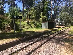 Selby railway station was opened in May 1904, and named after the local landowner and Shire President W. Selby. The station consists of a short platform and corrugated iron waiting shelter. Trains do not normally stop here but will stop if required.