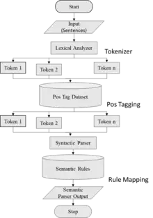 Semantic parsing maps text to formal meaning representations. This contrasts with semantic role labeling and other forms of shallow semantic processing, which do not aim to produce complete formal meanings.[9] In computer vision, semantic parsing is a process of segmentation for 3D objects.[10][11] Here, we have attached a system architecture for Semantic Parser to understand more briefly. In this picture it represent a basic architecture of semantic parsing, where the whole process has multiple steps like Token Analyzer takes input from input sentence and generate token, Syntactic Analyzer generate parse tree, and with the help of set of rules it generate the semantic meaning of a sentence.[12]