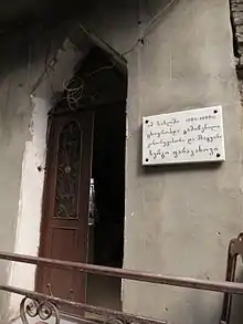 Memorial plaque on the Parajanov family house in Tbilisi (7 Kote Meskhi St.)