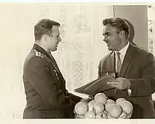 In 1967-68, the party leader, Leonid Brezhnev carried out a purge of officials associated with Shelepin, including the head of the KGB, Vladimir Semichastny, who was sacked and replaced by Yuri Andropov. Pavlov was removed from the office in June 1968. Four members of the Komsomol central committee and 'countless' local officials were also sacked.[5] The new 'youth' leader appointed in Pavlov's place was Yevgeny Tyazhelnikov, who was 40 years old and had not been involved in Komsomol for at least seven years.[6]