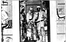environment, the techs had to wear full-coverage protective clothing and gloves which called for specialized communication equipment. Each person was equipped with a Setcom GM-312 Face Mask Kit and a Setcom Portable radio cable assembly to interface the kit to a Motorola MX series radio worn on a belt. The Setcom Kit included a bone conduction microphone, a unique device designed to respond to voice vibrations transmitted through the skull. Since this microphone was not in the facial portion of the face mask, mask integrity was maintained. This specialized application made it possible for all communications to be recorded and studied to further the investigation into why there was an accident and how much damage it had caused.[3]