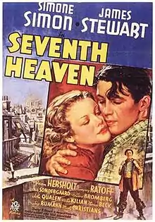 Seventh Heaven is an American romantic drama film released in 1937 by 20th Century Fox, directed by Henry King and starring Simone Simon and James Stewart. The supporting cast features Jean Hersholt, Gregory Ratoff, Gale Sondergaard, and John Qualen.