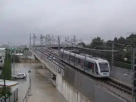 The Seville Metro (Spanish: Metro de Sevilla) is an 18-kilometre (11 mi) light metro[4] network serving the city of Seville, Spain and its metropolitan area. The system is totally independent of any other rail or street traffic. All 22 stations were built with platform screen doors.