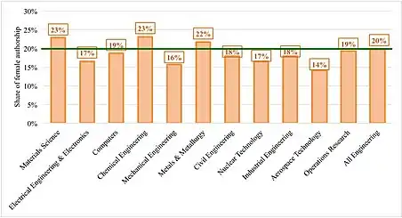- ↑ Ghiasi, Gita; Larivière, Vincent; Sugimoto, Cassidy R. (2015-12-30). "On the Compliance of Women Engineers with a Gendered Scientific System". PLOS ONE. 10 (12): e0145931. Bibcode:2015PLoSO..1045931G. doi:10.1371/journal.pone.0145931. ISSN 1932-6203. PMC 4696668. PMID 26716831.