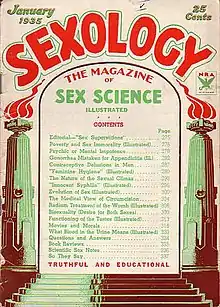 Sexology was a magazine about the practice of human sexuality, founded by polymath and publisher Hugo Gernsback. It was published in New York City between 1933 and 1983.[1] The magazine had a circulation of up to 200,000 at its peak,[1] and was also known under the titles Sexology Together and Sexology Today. At time of closure, the magazine was published by Medi-Media Publications.