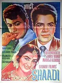 Shaadi (transl. Marriage) is a 1962 Indian Hindi-language film directed by Krishnan–Panju. The film stars Dharmendra, Manoj Kumar and Saira Banu. It is a remake of the Tamil film Orey Vazhi (1959).[1]