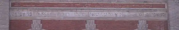 Close up of Hebrew inscription over front entrance