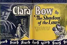 Shadow of the Law is a 1926 American silent crime drama film starring Clara Bow as a woman sent to prison for a crime she did not commit. Directed by Wallace Worsley, the screenplay was written by Leah Baird and Grover Jones and was based on the novel Two Gates by Harry Chapman Ford.[1][2] Shadow of the Law is now regarded as lost.[3][4]