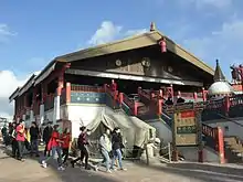 Rumors that PortAventura World would be investing in a new Bolliger & Mabillard Dive Coaster emerged in late 2010.[3] In May 2011, speculation that the park was planning to build a hypercoaster that would pass over Dragon Khan arose. Land clearing began in the summer of 2011.[3] Shambhala was announced to the public on 24 October 2011; the layout of the roller coaster was leaked 2 days earlier.[4][5] The last piece of track was installed in mid-April 2012 following a signing event and the placement of several country flags on the track.[6] Testing of the ride began in the same month.[7] Following the completion of testing, a ribbon cutting ceremony was held on 12 May 2012 before opening to the public the same day.[1][8] Over 300 workers from countries including Germany, France, Hungary, Poland, Switzerland, and United States took part in the construction of Shambhala.[6]