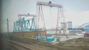 The railway is 143 kilometres (89 mi) in length and traverses several county-level cities in Suzhou Municipality of Jiangsu along the south bank of the Yangtze including Zhangjiagang, Changshu and Taicang.[2][3] The railway is also called the Shanghai–Suzhou–Nantong railway or the Husutong railway. The railway is designed to accommodate maximum train speeds of 200 km/h (120 mph),[4] the operation of electric traction hauled double-stack container trains[5][6][7] and has reduced train travel time from Nantong to Shanghai to just over one hour.[4]