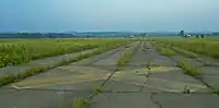 Abandoned runway, already slowly returning to grassland. Yellow cross indicates to aircraft that the airport is officially closed.
