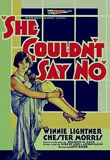 She Couldn't Say No is a 1930 American Pre-Code drama which stars Winnie Lightner, fresh from her success in Gold Diggers of Broadway (1929). It was adapted from a play by Benjamin M. Kaye. An aspiring singer ends up in a love triangle with a gangster and a socialite.