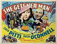 She Gets Her Man is a 1935 American comedy film directed by William Nigh and written by Aben Kandel. The film stars ZaSu Pitts, Hugh O'Connell, Helen Twelvetrees, Lucien Littlefield, Edward Brophy, and Warren Hymer. It was released on August 5, 1935, by Universal Pictures.[1][2][3]