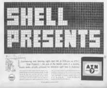 Shell Presents was an early attempt at Australian television drama, being an umbrella title for several different productions. It debuted on 4 April 1959,[1] and aired on ATN-7 and GTV-9, who split production of plays for the series between them. It was an anthology series, each program being a self-contained play for television.[2] The series won a Logie award in 1960 for TV Highlight of 1959. As the title suggests, it was sponsored by Shell. It was described as "a very big deal for the station: major institutional sponsorship from international companies for locally produced drama."[3] It would be followed by The General Motors Hour.