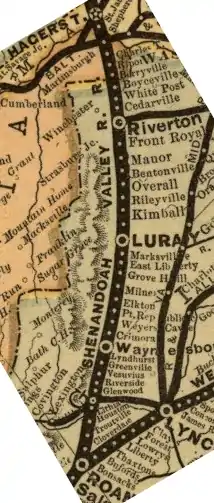 Shenandoah Valley Railroad was a line completed on June 19, 1882, extending up the Shenandoah Valley from Hagerstown, Maryland through the West Virginia panhandle into Virginia to reach Roanoke, Virginia and to connect with the Norfolk and Western Railway (N&W). The development of this railroad had considerable backing from the Pennsylvania Railroad. In September 1890 it went into bankruptcy and was reorganized as the Shenandoah Valley Railway. In December 1890, it became part of N&W. Today the tracks are a major artery of the Norfolk Southern system.