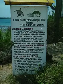 Sign at the Shimoni jetty indicating the standards and protocols in order to prevent harm or disruption to the natural processes and behavior of local marine wildlife.