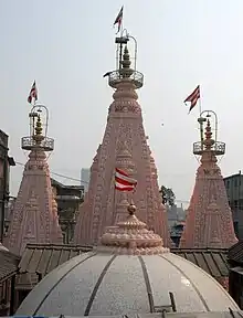![]() The Three Spires and dome of the Sabha Mandap atop the temple | |