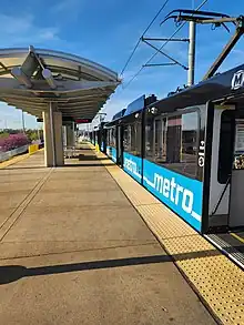 Shrewsbury–Lansdowne I-44 station is a St. Louis MetroLink station.[5] It is located on Lansdowne Avenue at River Des Peres Boulevard in St. Louis near its boundary with Shrewsbury in St. Louis County. The city limits between the two communities runs through the northern portion of the 800 space park and ride lot. The station is also a large MetroBus transfer and is equipped with a kiss and ride area and 25 long term spaces. The station primarily serves River Des Peres Park and the dense residential neighborhoods in southwest St. Louis and Shrewsbury.