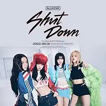 On September 6, 2022, the title poster for the second single, "Shut Down", was released on Blackpink's social media accounts.[4][5] From September 10 to 13, promotional posters of the song featuring each of the members were released.[6] On September 13, a teaser for the music video was released, and the official music video was released on September 16.[7]