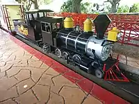 Siam Park City (Thai: สวนสยาม; RTGS: Suan Sayam) is an amusement and water park in the Khan Na Yao district of Bangkok, Thailand. It opened in November 1980. For the transport of visitors a miniature railway in the way of a light railway was installed. The line was built in a broad circuit around the area. Due to old maps, an old photograph and some still existing tracks (as seen in September 2016), it is certain that the railroad line left the inner terrain of the park at least in the southbound section behind and circled the waterpark installations. In a northward direction the still existing tracks end nowadays in front of the Dinotopia attraction. The line was a single-way track with, had a gauge of 2 ft, several sidings and served some stop stations. The storage sidings for the units, hauled by a diesel locomotive, were behind the present-day attraction Log Flume.