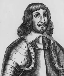 Sir John Hotham fought in the Palatinate campaign of the Thirty Years' War in the early part of the seventeenth century, before later being returned as a Member of Parliament for Beverley in the East Riding. He was a favourite of Thomas Wentworth, who appointed him governor of Hull in 1628. Hotham opposed both the King and Wentworth during the Bishops' Wars, and was replaced as governor in 1639. The following year he withheld reinforcements from Wentworth, for which he was stripped of more of his positions.[14] Hotham was renowned for being easily offended, and was described by Sir Hugh Cholmeley as often letting his emotions overcome his better judgement.[15] He felt slighted by the loss of his commissions, and turned into a political opponent of the King in Parliament,[16] where he became one of the most vocal members.[17]