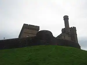 ![]() Inverness Castle in modern times. Some of the old curtain wall can be seen in the foreground, while the castle building itself was rebuilt in 1836 | |||||||