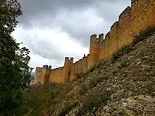 At this juncture, two groups of crusaders made landfall in Portugal. At Silves, a single ship carrying about 100 English crusaders separated from its fleet by a storm arrived in Silves amid great confusion. Bishop Nicholas begged them to take part in the city's defence, while the citizens scuttled their ship. After they were promised a replacement ship, they agreed to join the defence.[2] The other nine ships of the fleet landed at Lisbon while King Sancho was preparing to march in defence of Santarém. According to Roger of Hoveden, 500 crusaders agreed to join the king. With their arrival, Sancho rebuffed al-Manṣūr's offer of a seven-year truce, which would have required surrendering Silves.[2] The king took up a position in Santarém, which came under siege.[6] Facing stronger resistance than anticipated, the caliph abandoned Tomar and Santarém and retreated south.[2] The siege of Tomar had lasted five days. In retreat, Torres Novas was burned.[6]