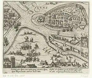 The siege of Sluis of 1587 took place between 12 June and 4 August 1587, as part of the Eighty Years' War and the Anglo-Spanish War (1585–1604).[1][2] Its capture by the Spanish formed a significant advance towards the Enterprise of England.