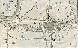 At first, Habert's attack on his right flank fooled Blake into thinking it was Suchet's main effort. Then Palombini's attack at Mislata diverted his attention. Despite persistent assaults, the Italians failed to break through and suffered heavy losses. Suchet's main column reached Blake's left rear virtually unopposed.[6] As Harispe approached the village of Aldaia, he sighted the Spanish cavalry reserve. With a single squadron of the 4th Hussars, Boussart rashly attacked a vastly superior force. The handful of French horsemen were wiped out, while Boussart was cut down and left for dead, his sword and decorations pilfered.[8] The bulk of the French cavalry under General of Brigade Jacques-Antoine-Adrien Delort[9] soon came up and routed the Spanish troopers, driving them beyond the Rio Júcar and depriving Blake of much-needed cavalry support.[8]
