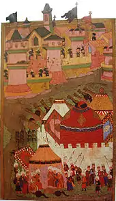 An Ottoman depiction of the siege from the 16th century, housed in the Istanbul Hachette Art Museum