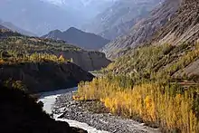 "Sikandarabad" is a mountainous area. It is along the "Karakoram range". It is near base camp of "Rakaposhi" mountain. Opposite "Skandarabad" there are the great "Himalaya range"mountains. It contains many fruit trees and also vegetables, for example, cherry, apples, peach, apricot, potatoes, and maize. It also has dry fruits trees, for example, walnut, almond, and dry apricot.