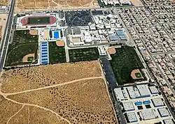- ↑ Self, Brooke (2014-04-22). "Adelanto High School grand opening planned for Saturday". Victorville Daily Press. Retrieved 2019-05-11.