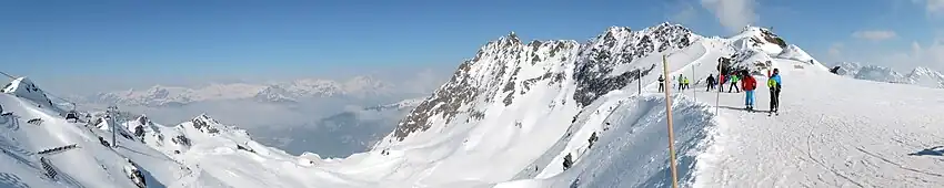 The height of the area extends from 700 m to 2,430 m. The ski area offers 141 km of certified pistes over 50% of which are at over 2,000 meters.[4] These 141 km consist of 27 easy pistes (60 km), 24 pistes of medium difficulty (45 km), 8 difficult pistes (8 km) and 28 km free ride routes.[5][6] Skiers can improve their racing skills on two speed measurement tracks. Additionally, there are 8 km of winter hiking trails.