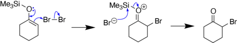 - 1 2 3 Clayden, J., Greeves, N., & Warren, S. (2012). Reactions of silyl enol ethers with halogen and sulfur electrophiles. In Organic chemistry (Second ed., pp. 469-470). Oxford University Press.