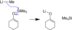 Lithium enolates, one of the precursors to silyl enol ethers,[6][7] can also be generated from silyl enol ethers using methyllithium.[15][3] The reaction occurs via nucleophilic substitution at the silicon of the silyl enol ether, producing the lithium enolate and tetramethylsilane.[15][3]