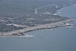 Simón Bolívar International Airport (Spanish: Aeropuerto Internacional Simón Bolívar)[1] (IATA: SMR, ICAO: SKSM) is an international airport serving the city of Santa Marta, Colombia. The airport is located 14 kilometres (8.7 mi) south of Santa Marta city center, on the shores of the Caribbean Sea. 18 kilometres (11 mi) north of the municipality of Ciénaga in Colombia.