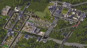 The newest addition to the roads section are one way roads and avenues. One-way roads are the same size as normal roads only they stretch into one direction, while avenues are 4-lane (2 lanes per direction) dual carriageway roads the same size as highways, with some shrubbery in the center strip (defined by the wealth of buildings on the road). Avenues have a lower capacity than highways, but are more easily accessible and allow buildings to be placed adjacent to them. Avenues could be made in SimCity 4's predecessor, SimCity 3000, by building two roads parallel to each other, however they are not present in the original SimCity 4.