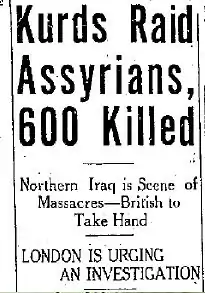 The number of deaths was estimated by British officials at 600.[5] Some Assyrian estimates are higher positing that as many as 6,000 were killed and over 100 Assyrian villages were destroyed and looted.[9][10]