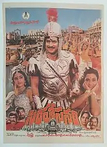 Simhasanam (transl.Throne) is a 1986 Indian Telugu-language epic historical film written, directed, edited, and produced by Krishna, who starred alongside Jaya Prada, Radha, and Mandakini. The film was simultaneously made in Hindi as Singhasan. Based on a folklore tale, the film released on 21 March 1986.[1] Simhasanam is the first 70 mm stereophonic sound film in Telugu cinema.
