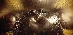 Although stemmata are simple eyes, some kinds, such as those of the larvae of Lepidoptera and especially those of Tenthredinidae, a family of sawflies, are only "simple" in that they represent immature or embryonic forms of the compound eyes of the adult. They can possess a considerable degree of acuity and sensitivity, and can detect polarized light.[21] They may be optimal for high light sensitivity.[22] In the pupal stage, such stemmata develop into fully fledged compound eyes. One feature offering a clue to their ontogenetic role is their lateral position on the head; ocelli, that in other ways resemble stemmata, tend to be borne in sites median to the compound eyes, or nearly so. Among some researchers, this distinction has led to the use of the term "lateral ocelli" for stemmata.[9]