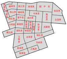 The district consists of Haoran, Zhencheng, Desheng, Zhenhua, Zhengqi, Dezheng, Rensheng, Dewang, Huasheng, Jiaoyuan, Yongning, Yuheng, Shunchang, Wenchang, Guangyao, Xingchang, Kaiping, Chenggong, Xinjiang, Liming, Aiping, Nangang, Zhongtung, Mingzhuang, Daming, Qiushan, Zhangyi, Jianxing, Jianhua, Hanmin, Rongzhi and Tungpo Village.[8]